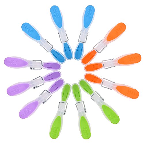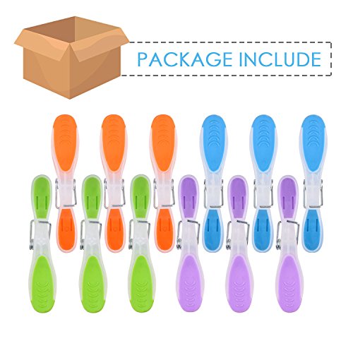 - 12 PCS Pins each pack: 4 sorted colors, blue, green, purple, orange, which won’t get lost easily in sand or grass, and those bright colorful decorative towel pins embellish life as well
