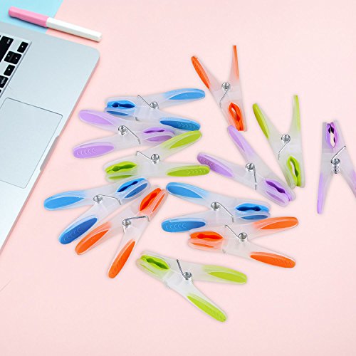 Wimaha Clothes Pins Laundry Clips Non-slip Plastic Clothespins Decorative for Pictures, Air-Drying Clothing, 1 Pack of 12, 3 Blue, 3 Green, 3 Purple, 3 Orange