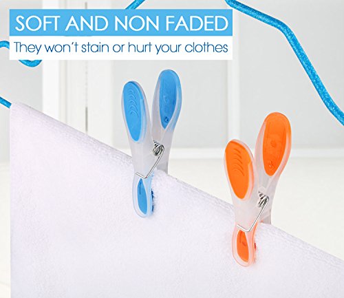- Practical: large anti-slip material and design helps clothes, socks, towel clip firmly on the hangers, clotheslines or beach chairs or other chairs, get less worry about falling down in a windy day