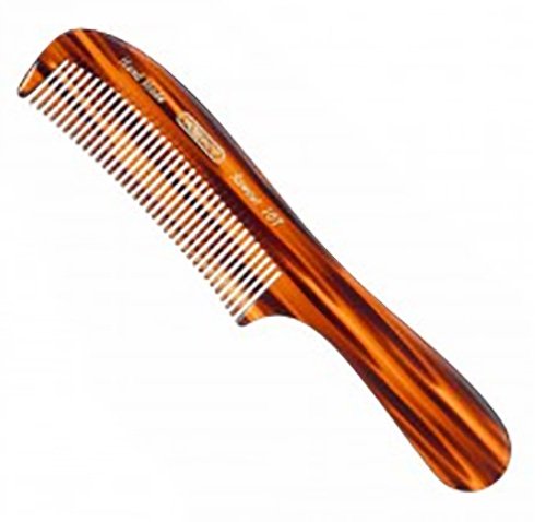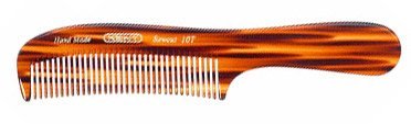 Product Description This comb is faux tortoishell, hand polished to glide through the hair without causing damage or scratching the scalp.
