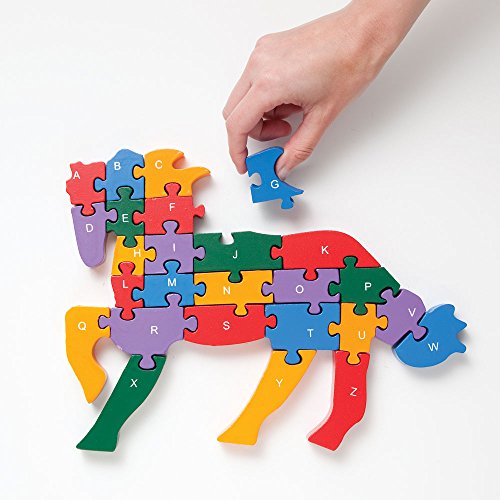 -. Binding : Toy -. Brand : Bits and Pieces -. Color : Multicolored -. EAN : 8139740436380 -. Feature : Children will develop hand-eye coordination and color recognition in addition to learning counting and the letters of the alphabet with this charming ABC horse. / Alphabet on one side and numbers on the other. / Non-toxic paint. / 26 chunky pieces. / Measures 10" x 9" x 3/4". -. IsAdultProduct : 0 -. Label : Melville Direct -. LegalDisclaimer : Remove and dispose of all packaging before giving to a child. -. Manufacturer : Melville Direct -. MPN : 43638 -. PackageQuantity : 1 -. PartNumber : 43638 -. ProductGroup : Toy -. ProductTypeName : TOYS_AND_GAMES -. Publisher : Melville Direct -. Studio : Melville Direct -. Title : Bits and Pieces - Horse Shaped Alphabet Puzzle - ABC puzzle blocks - Educational Learn Letters and Numbers Horse Puzzle Animal - Colorful, Non-Toxic Paint
