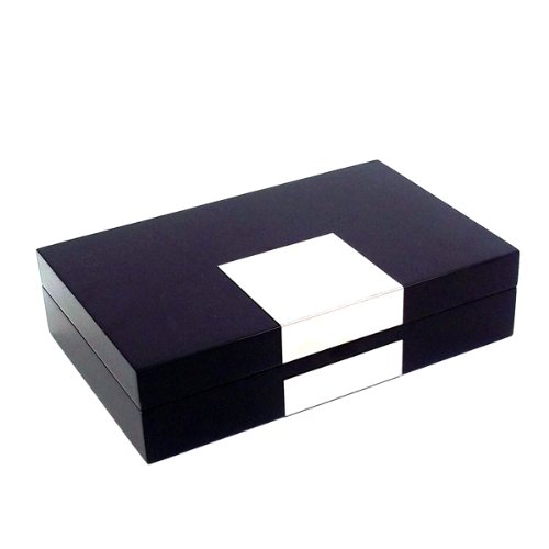 Bey-Berk Black Lacquer Wood Valet Jewelry Box