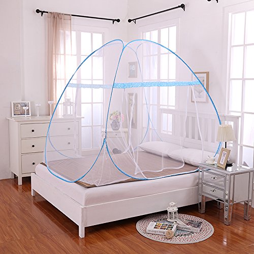 Bed Mosquito Net, Amever One Touch Free Installation Mosquito Netting for Bed Foldable Yurt Mosquito Tent Net Pop Up for Baby Adult (1.0x1.9x1.1m Blue)