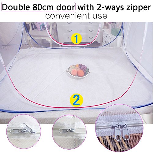 Double 80cm door with 2-ways zipper, more convenient to go in and out. With bottom design to prevent baby fall from bed, also mosquitoes from the corner inside.