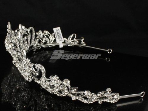 1.This is a beautiful tiara for wedding, It made with a lot of clear crystals in metal setting,Very beautiful!!! 2.13 1/2(Along the band) X 2 1/3inch (Tall at the center)
