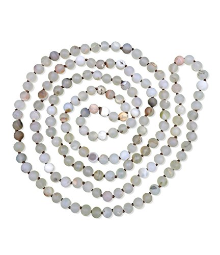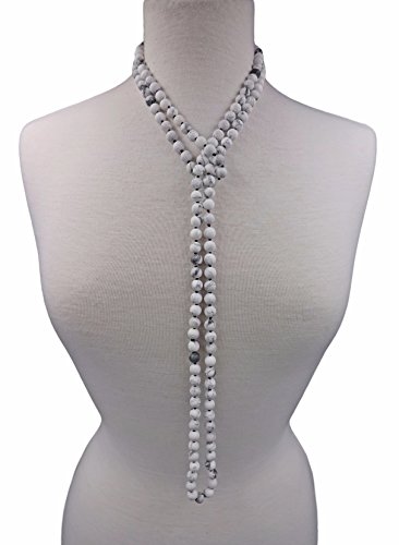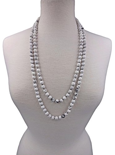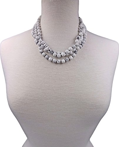 This necklace features 8MM genuine howlite semi-precious stone beads in matte finish.