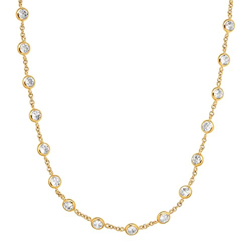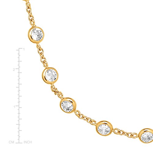 Rock this simple necklace on its own or layer it with your other favorite pieces for an ultra-chic look! Crafted in 14K gold-plated sterling silver, round-cut white cubic zirconia stations dot the chain, finished with a lobster clasp. Piece measures 18 inches in length plus a 2-inch extender for adjustable length.Feature
