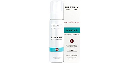 New Hair Loss Technology is what has made ScalpTX +, the Crown Jewel of our scalp treatment program. ScalpTX+ is regarded as the most powerful anti-hair loss product in its class, and an essential product to our hair recovery program. Supported with clinical trials from RootBioTec® and AnaGain® ScalpTx is a go to product for anyone concerned about hair loss as part of their daily regime. A concentrated formula uniquely designed for hair loss sufferers and weak and thin looking hair. Scientifically backed with RootBioTec® and AnaGain®, the SureThik® ScalpTX+ Foam contains high concentrations of root extracts that are certain to help reverse the signs of hair loss. By re-activating hair growth and strengthening the weak and fine hair, hair will begin to look fuller and thicker after 90 days use. Natural based extracts, proteins, botanicals and natural hair re-growth ingredients are used along with listed extracts and oils that therapeutically help to stimulate hair help regrowth hair every time you apply the ScalpTX+ Foam. To be used daily 1-2 times per day on dry or wet hair. Scalp may seem warm for up to 30 minutes after use. ScalpTX+ can be used with any hair styling products and will not leave the hair sticky or oily.Feature