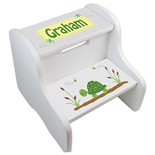 -. Title : Personalized Turtle White Two Step Stool
