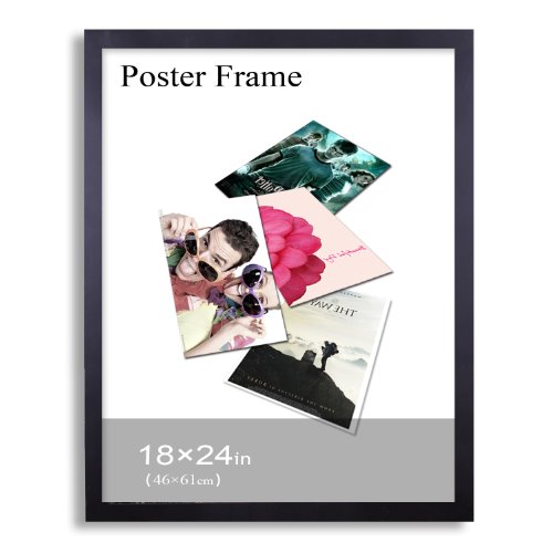 Adeco 18x24 Black Wood Decroative 1.25 inch Margin Wall Hanging PIcture Poster Frame - Made to Display 18x24 Photo or Poster