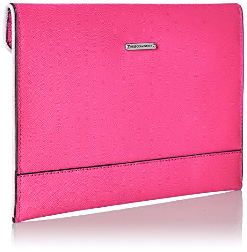 Rebecca Minkoff Leo with Contrast Piping Clutch, Neon Pink/Storm Grey, One Size