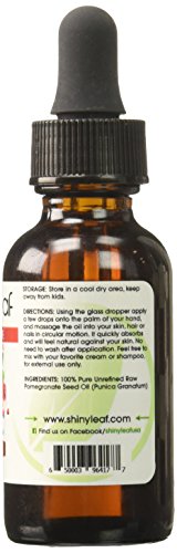 Shiny Leaf Pomegranate Seed Oil, Cold Pressed, 100% Pure Virgin and Unrefined and Natural, Moisturizes, Renews Skin cells, Reduces Wrinkles, Packed with...