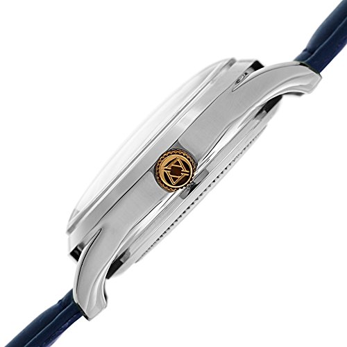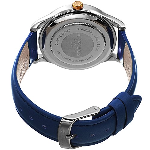 -. Title : Akribos XXIV Women's Quartz Two-Tone Case with Gold-Tone Accented Silver Sunray Dial on Blue Glove Style Genuine Leather Strap Watch AK921BU