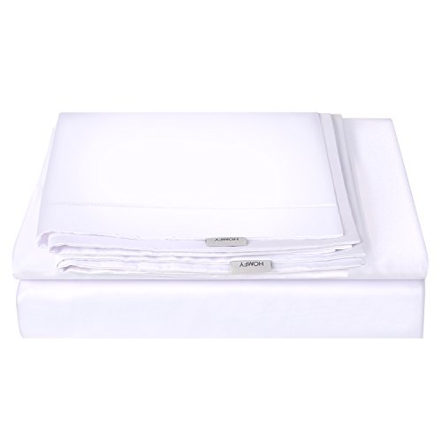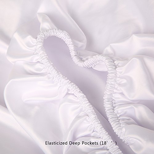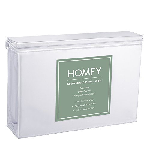 HOMFY Queen Bed Sheet Set, Satin Microfiber With Flat Sheet, Deep Pocket Fitted Sheet and 2 Pillow Shams- Fade, Shrink and Wrinkle Resistant - White