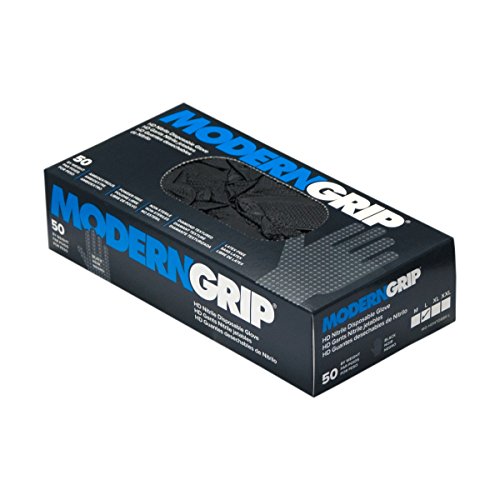 Modern Grip MG-HDNTD8BK-M Modern Grip HD Nitrile Disposable Gloves, 8 Mil Thickness, Diamond Textured, Powder Free, M, Black (Pack of 50)