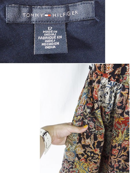 Ladies ブランドTommyHilfiger トミーヒルフィガー カラーカラフル メール便不可 コンディション★★★ 素材コットン 表記サイズ16 スタッフコメント裏地あり。厚手のコットン素材です。 実寸サイズ 着丈 95 cm 身幅 44 cm 肩幅 31 cm ウエスト 31 インチ( 80 cm) ※ウエスト・ヒップ以外は平置き採寸