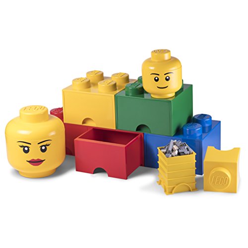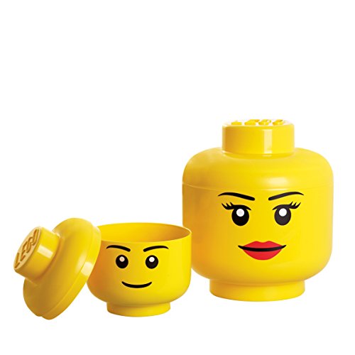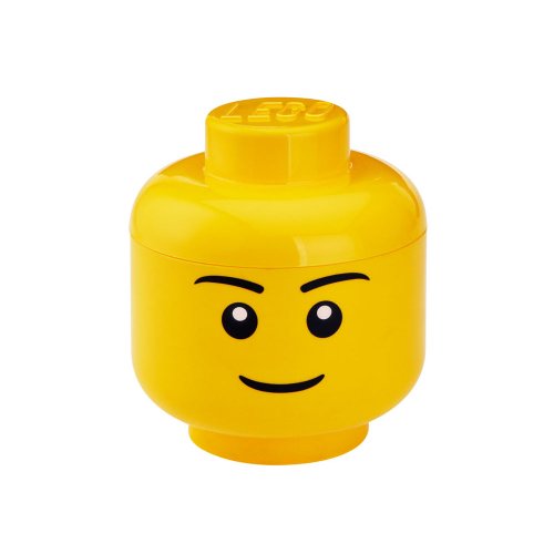 Small Storage Box shaped as the head of the classic LEGO Boy Minifigure size Small;The well-known LEGO stackable system makes it both a box and a toy