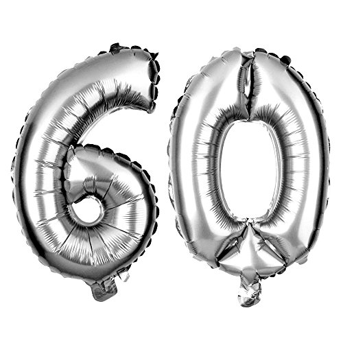 60 Large Number Balloons 60th Birthday or Anniversary Party Decorations Supplies (40 Inch, Silver)