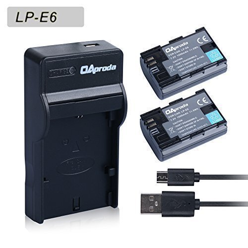 OAproda® 2-Pack Replacement LP-E6 Camera Battery and MICRO USB Charger for Canon Original LP-E6,LP-E6N,Canon EOS 5D Mark II, EOS 5D Mark III, EOS 6D, EOS 60D, EOS 60Da, EOS 7D, EOS 70D, EOS 7D Mark II