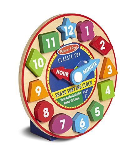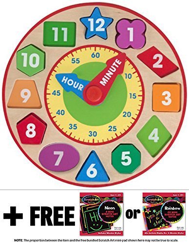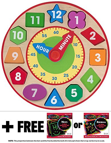 This preschool-friendly clock features color-coded minute and hour hands that spin around with a simple push . . . but no matter where they point, it's always time for learning and fun! Kids can associate the colors, sort the shapes, and solve the puzzle as they manipulate the color blocks and turn the hands, building cognitive and motor skills all the while. Extension activities printed right on the box encourage parent-and-child play, helping children begin to master early-learning concepts as they gain familiarity with the form of a clock and concepts of time.