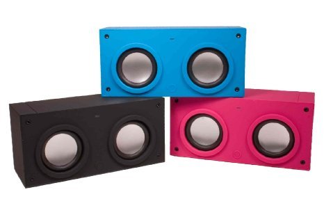 -. Feature : Choose your favorite color: Black, Blue, or Pink. Packaged in color box. / Materials: Rubberized coated ABS. Includes MIA - Magnetic Induction Amplifier. / Wireless touch, high quality amplifying stereo speaker. No Bluetooth, No Wifi, No Synching required. / Takes 3AAA (Not included). / Size: 3"H x 6.25"L x 2.25"W