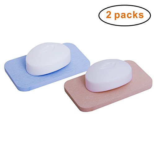 Absorbent Soap Bar Holder, Anti-bacterial Soap Saver Dish , Made from Self-dry Diatomaceous Earth, Sink Deck Bathtub Shower Dishes (2 Pieces Light Blue and Light Pink)