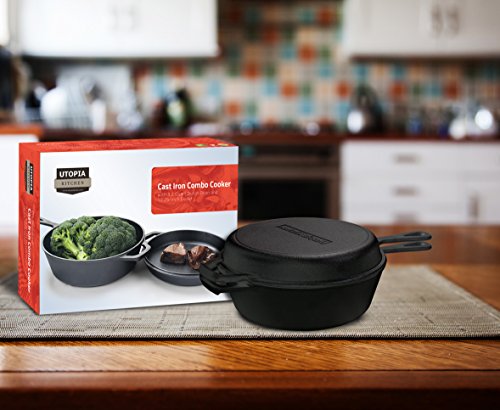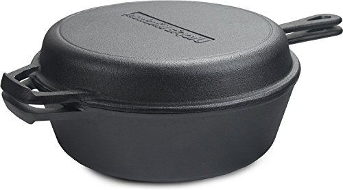Get the most value for your money with Top-Rated Professional Grade Cooking Equipment! Our Pre-Seasoned Cast-Iron Combo Cooker with 3.2 Quart dutch oven and 10.25-inch shallow skillet which can also be used as a lid brings luxury cookware to your kitchen.