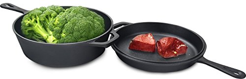 Includes 3.2 Quart dutch oven and 10.25 inch shallow skillet which can also be used as a lid