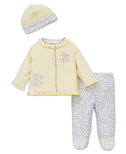 -. Title : Little Me Baby Girls' 3 Piece Knit Cardigan Footed Pant Set with Hat