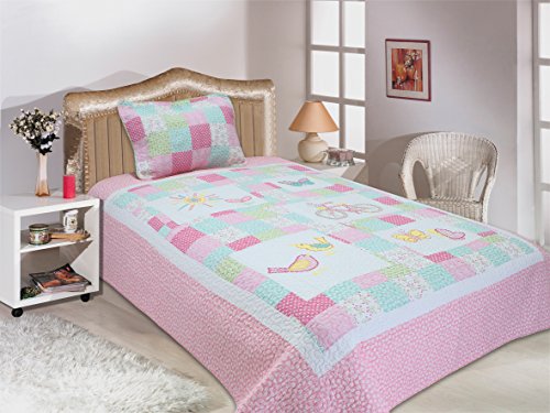 (Auvoau)/Bedding Bath/Bedding/DIRECT FROM USA/Auvoau Kids Quilt, Birds Butterfly Pink Plaid Girls Quilt Sets 3pc, Full