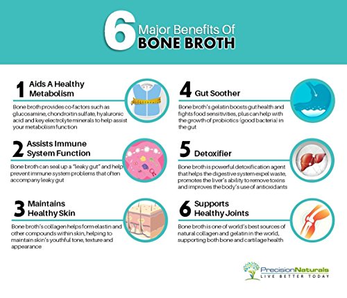 SOURCE of NUTRIENTS Often Lacking in the Standard American Diet: Precision Naturals’ Bone Broth provides a vast array of nutrients in an easily absorbable form. Such nutrients include: Calcium. Phosphorus, Silica, Glucosamine, Chondroitin Sulfate, and many vital trace minerals, vitamins, and proteoglycans.