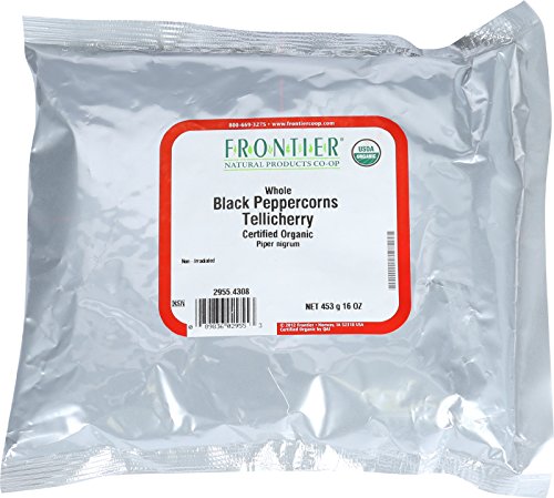 Frontier Herb Bulk Peppercorns Organic Whole Black Tellicherry Grade, 1 Pound