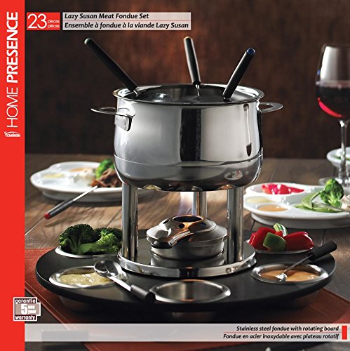 Trudeau Home Presence 23 Piece Stainless-Steel Lazy Susan Fondue Set - 64 Ounce