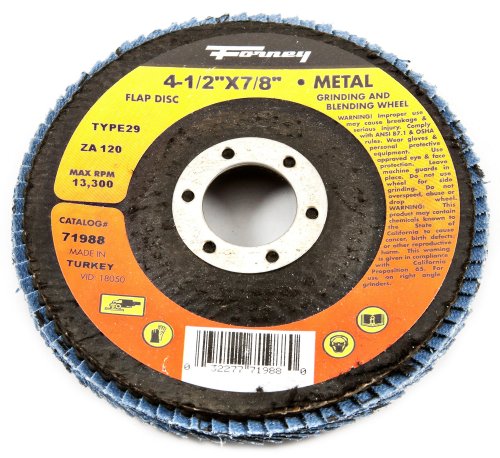 Forney 71986 Flap Disc, Type 29 Blue Zirconia with 7/8-Inch Arbor, 60-Grit, 4-1/2-Inch