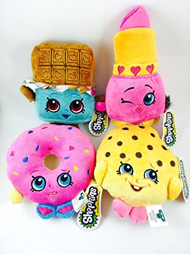 -. Title : Official Shopkins Soft Plush Character Toy - Set of 4 - 8.5" LIPPY LIPS, 5.5" CHEEKY CHOCOLATE, 6.5" D'LISH DONUT and 6.5" KOOKIE COOKIE