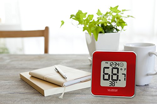 Studio : La Crosse Technology Publisher : La Crosse Technology Binding : Misc. Product Description Stylish tabletop thermometer with humidity will add some flair to any room. Battery operated 2 inch LCD shows current temp humidity. Manual 12/24 hour time and will record MIN/MAX values. Comes in a variety of colors. Includes CR2032 battery to operate. Tableside or wall hung. 0