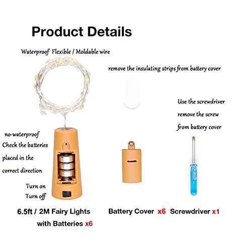 - ❤ Cork shaped ,Perfectly in any bottle, 20-Micro LED ,2 Meter /6.5 ft give the appearance of evenly distributed inside the empty antique bottles , sit down enough in an average wine bottle .Reuse glass bottles ,beer bottles ,soda bottles , collecting liquor bottles, DIY whiskey bottles .Easy to use, just switch the button to turn on/off the light