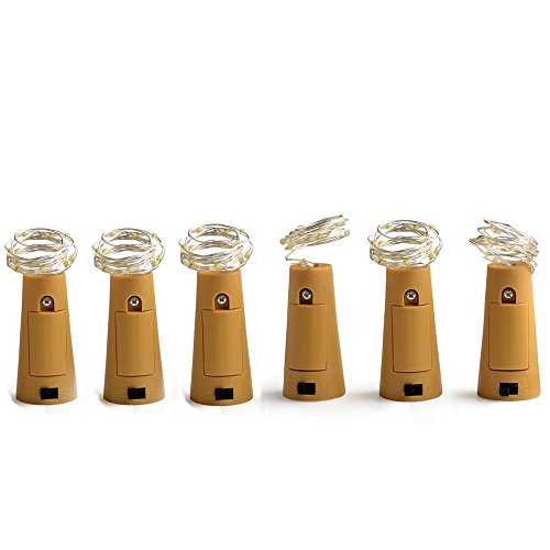 6 Pack 20-LEDS Spark Wine Bottle Light, Cork Shape Battery Copper Wire String Lights for Bottle DIY, Christmas, Wedding and Party Décor (White)