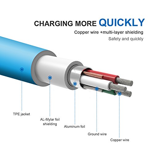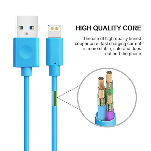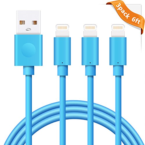 iPhone Charger Cable, Areker 3 Pack 6Ft iPhone USB Charging Lightning Cable 8 Pin Sync Cord for iPhone 7 Plus 6s 6 Plus SE 5s iPod Nano Touch 5 iPad Mini Air (Blue)