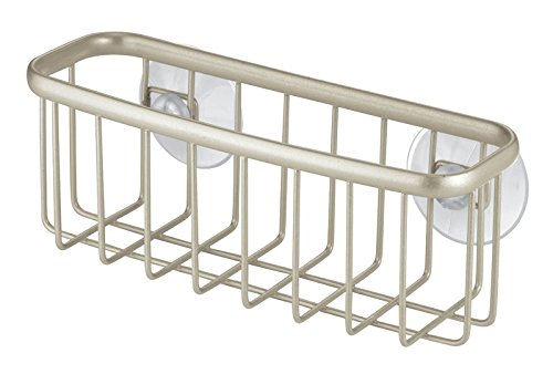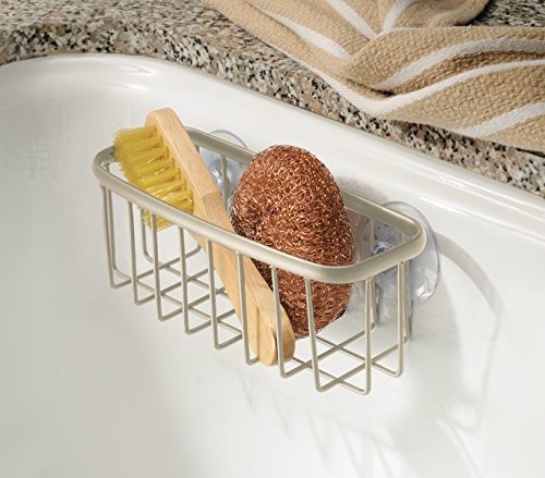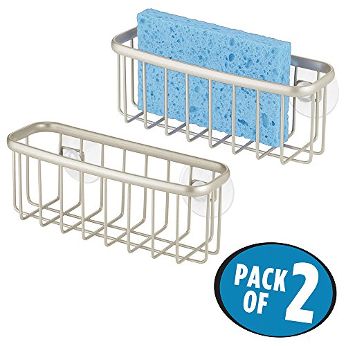 mDesign Kitchen Sink Suction Holder for Sponges, Scrub Brushes, Soap - Pack of 2, Satin