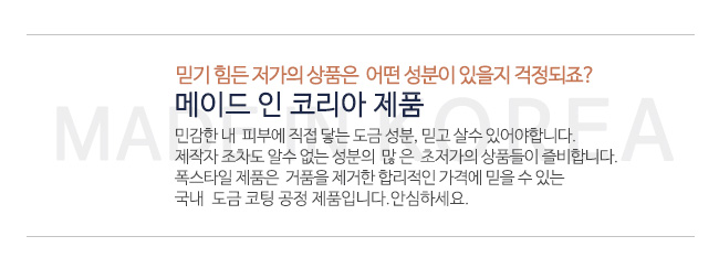 폭스타일의 모든 제품은 인체에 무해한 재질로만 만들어집니다.