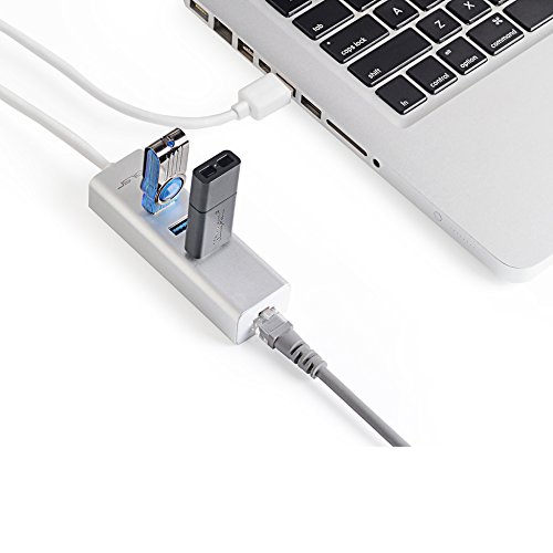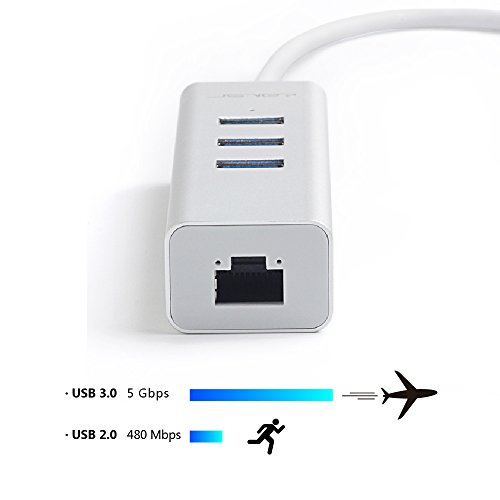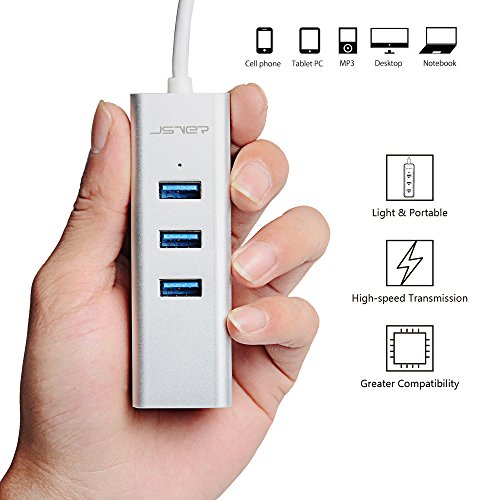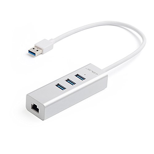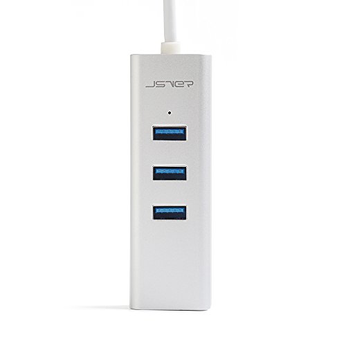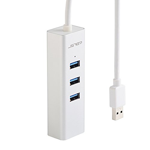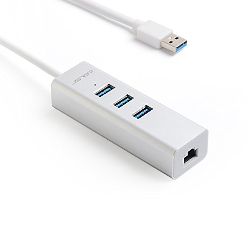 JSVER Unibody Aluminum 3 Ports USB 3.0 Hub and RJ45 10/100/1000 Gigabit Ethernet Hub Converter with Built-in 1ft Cable