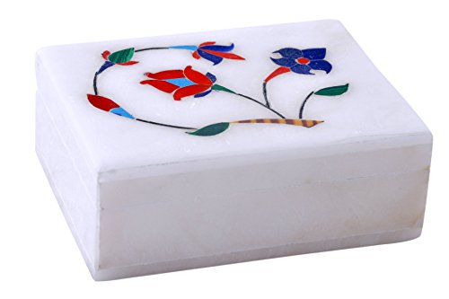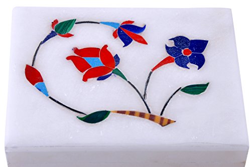 Hashcart (4 Inch) Floral Painting Decorative Marble Box For Jewellery Storage / Gift