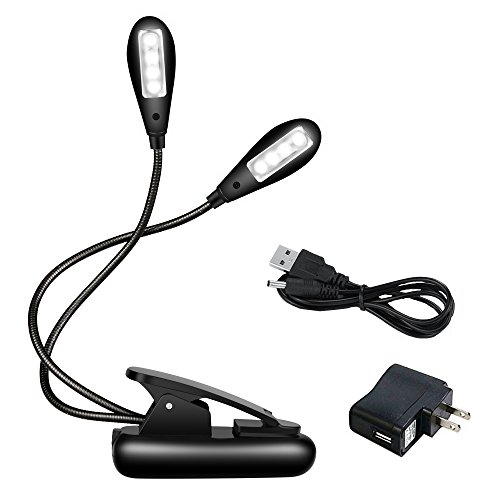 Camkey Dual Head Rechargeable 8 LED Book Light, Clip-on Reading Light with 2 flexible arms and Soft Padded Clamp for book, Kindle, loft bed, car, tent