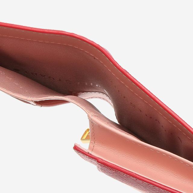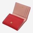 하단의 심플한 로고 장식으로 포인트를 주었으며 내부 배색으로 여성스러운 느낌을 살린 반지갑입니다.
