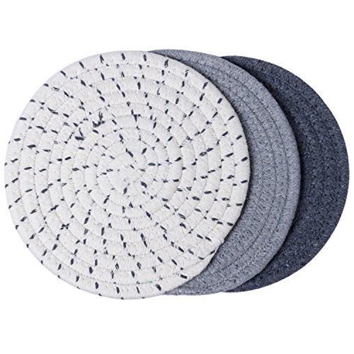 100% Cotton Thread Weave Pot Holders, Hot Pads, Pot Holders, Spoon Rest, Jar Opener & Coasters, For Cooking and Baking, Diameter 7 Inches, Round, Set of 3, Grey Set