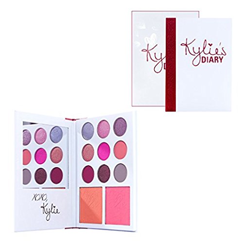 KYLIE'S DIARY | KYSHADOW + BLUSH PALETTE Contains: 9 Kyshadow pressed powder eye shadow palette (net weight / pods net 9 X 1.40 grams / 12 X 0.05 oz) 2 pressed powder blushes (net weight / pods net 2 X 9.5 grams / 2 X 0.33 oz) The #KylieCosmetics Kyshadow pressed powder palette is your secret weapon to create the perfect Kylie look. Each Kylie's Diary comes with 9 pressed powder eye shadows and two blushes that can be used together to recreate Kylie's favorite looks or customize your own. Each Kylie's Diary contains the following shades: Kyshadow Bae (metallic icy periwinkle) Heart Breaker (pearlized shimmering baby pink) Make Me Blush (metallic sparkly lavender) Sweet Like Candy (metallic bright rose gold) Love Potion (satin hot pink) Be Mine (matte soft coral) Heart Eyes (matte deepened magenta) Romance (metallic golden burgundy) Love Me Not (matte plum grey) Blush First Date (subdued tangerine) Virginity (vibrant warm pink)