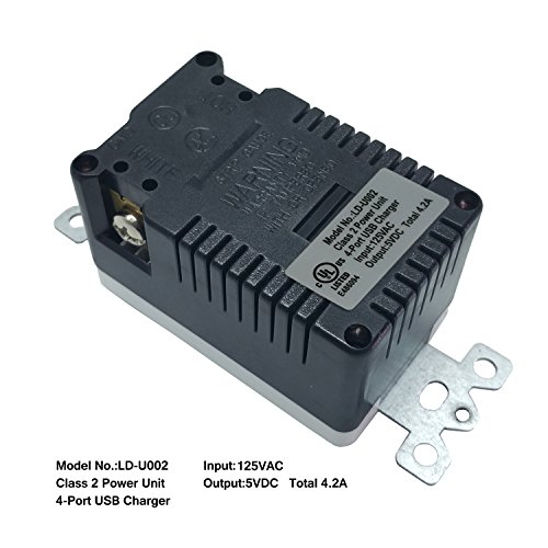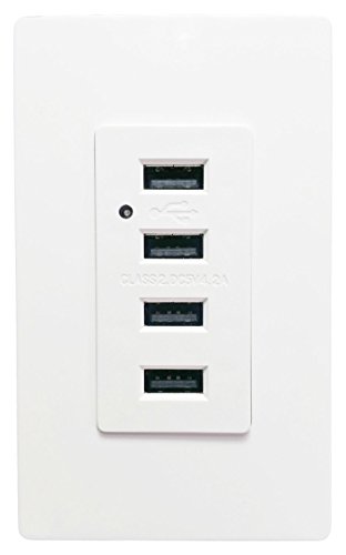Seckatech 4 USB Ports Charger Wall Outlet, Smart High Speed Charging Receptacle with 2 Free Plates, 4.2A 5V DC, White