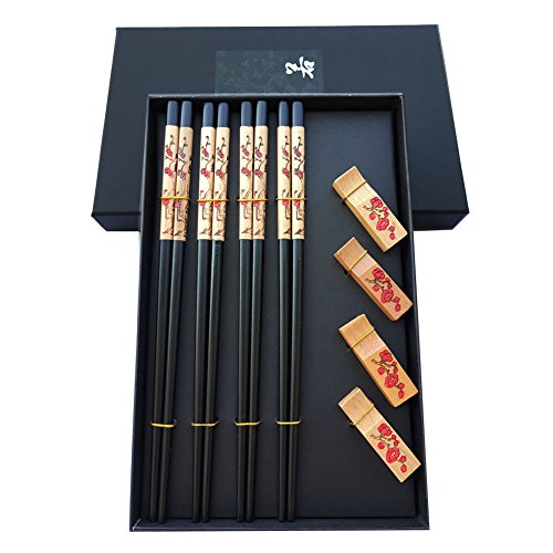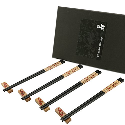 - Chopstick with Holder Set – Classic and natural shape of sticks with elegant shine for the chopsticks. Length of 9-Inch makes it easy to hold up. Tradition Chinese Style plum flower pattern and the rests are handcrafted with sincere craftsmanship is marvelously elegant.