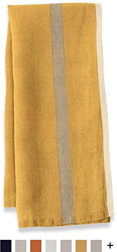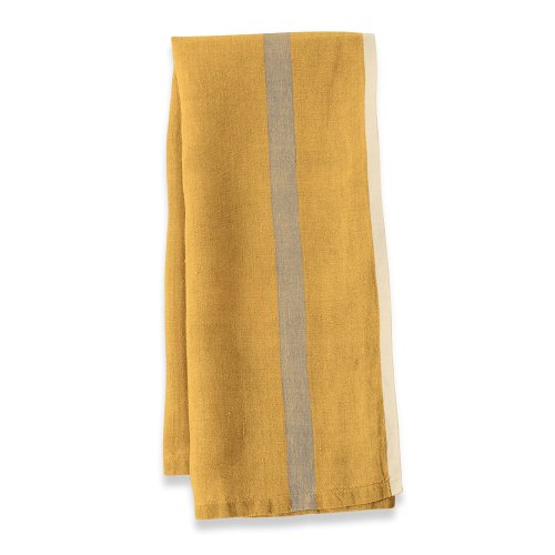 Caravan Collection by Couleur Nature Laundered Linen Stripe Tea Towels, 20-inches by 30-inches, Mustard/Grey, Set of 2